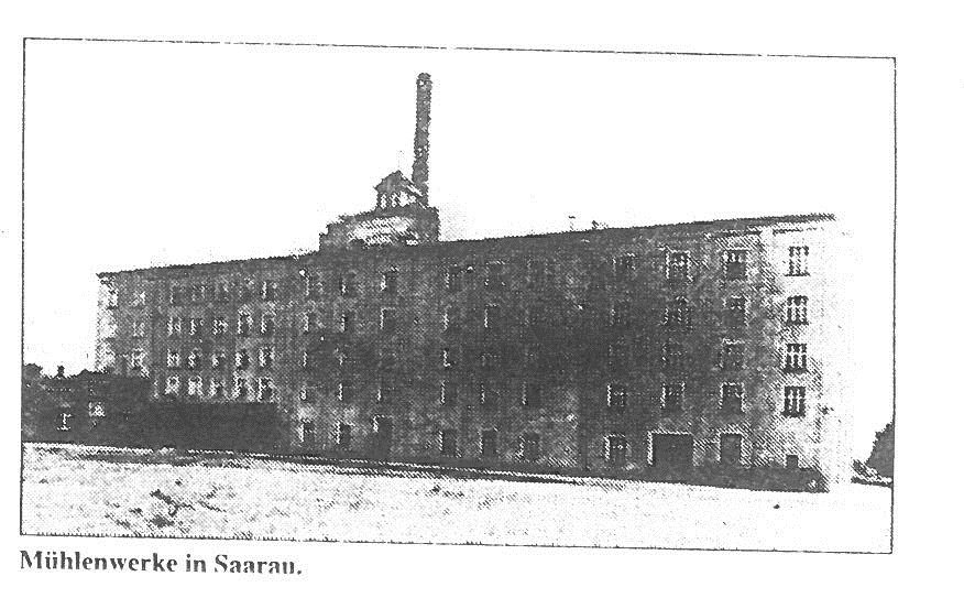 Obiekt "Mühlenwerke in Saarau" (Przedsiębiorstwo młynarskie) przed 1945 roku (zarys tego obiektu z kominem widnieje na fotografii przedstawiającej wrak B-17G). Za udostępnienie fotografii "Mühlenwerke in Saarau" składamy podziękowania Panu Scholzowi z Magdeburga, który odwiedził Żarowską Izbę Historyczną w ubiegłym tygodniu