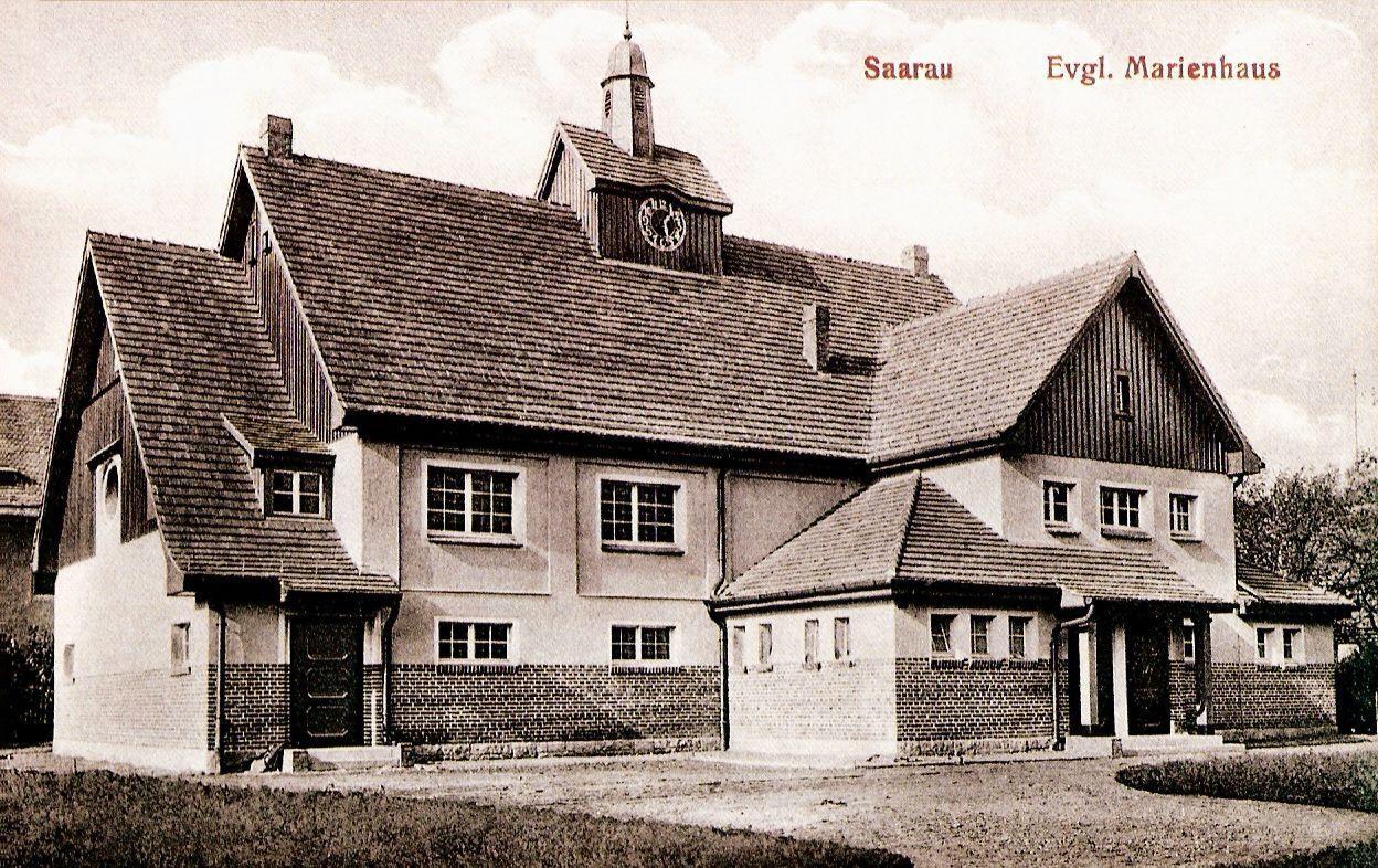 Żarowianie wyznania protestanckiego byli członkami piotrowickiej gminy wyznaniowej skupiającej ewangelików z Łażan, Żarowa, Pastuchowa, Mikoszowej i Przyłęgowa. Przez wiele lat Piotrowice były centrum ich życia religijnego. Jedynym wyjątkiem była, działająca w Żarowie od 1878 r. szkółka niedzielna. W 1910 roku Marie i Eugen von Kulmiz postanowili wybudować dom opieki nad żarowską młodzieżą. Po wykonaniu projektu przez wrocławskiego architekta Henry’ego, w 1912 r. rozpoczęto budowę na terenie należącym do rodziny von Kulmiz i przez nią finansowaną. 16 grudnia 1913 roku w budynku (nazwanym na cześć fundatorki Marienhaus – dom Marii) odprawiono pierwsze nabożeństwo i dokonano poświęcenia budowli. Dzięki zabiegom społeczności ewangelickiej, w największym pomieszczeniu urządzono kaplicę. Pozostałe pomieszczenia służyły wychowaniu młodzieży, szkoleniom; odbywały się w nich spotkania towarzystw i związków lokalnej społeczności ewangelickiej. Marienhaus mieścił również bibliotekę założoną przez von Kulmizów, którzy na początek ofiarowali jej ok. 2000 książek.