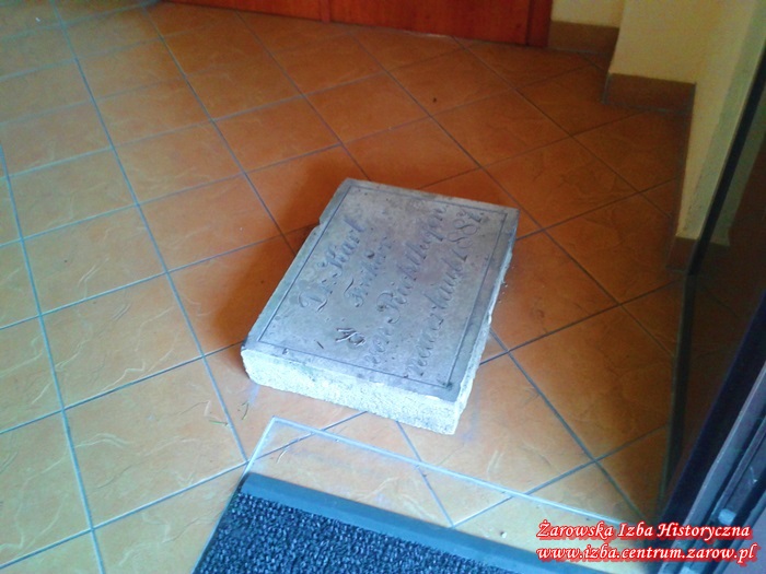 Za zgodą właściciela terenu pana Janusza Górniaka płyta została przeniesiona do Żarowskiej Izby Historycznej