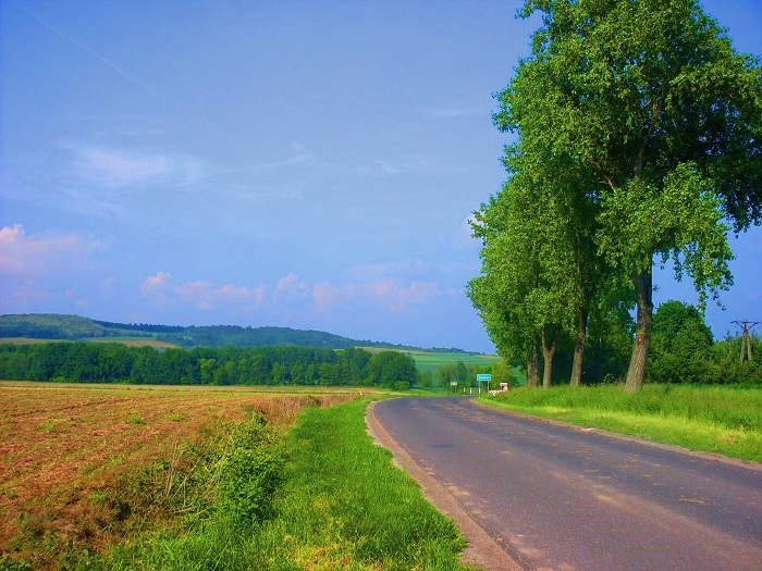 Odcinek drogi Łażany-Przyłęgów, brukowany w latach 1892-1901, pokryty warstwą bitumiczną w 1977 roku, fot. A.Bielec